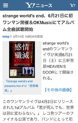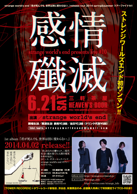 strange world's end presents live #10「感情殲滅」のライヴレポートが掲載されています!!
