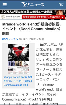 strange world's end presents 3man live 『Dead Communication』vol.1開催決定!!